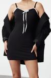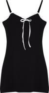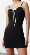 Moda Stil Slim Havuz Yaka Mini Boy Renk Bloklu Fiyonk Detaylı Bodycone Vücuda Oturan örme Elbise - Her ortama uyum sağlayan kadın elbiseleri, zarafeti ve şıklığı bir araya getirerek tarzınıza sofistike bir dokunuş katıyor.