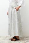 Ersefa Moda Tesettür Regular Çizgili Desen Günlük Maxi Boy Çizgili Cep Detaylı Keten Görünümlü Dokuma Etek
