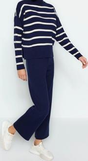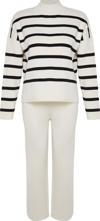 Moda Triko Bisiklet Yaka Düşük Kol Casual Günlük Ekru Triko Pantolonlu Alt-Üst Takım ürünümüz, hem şıklığı hem de rahatlığı bir arada sunar.