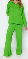 Moda Triko Düz Dik Yaka Düşük Kol Casual Günlük Geniş Kalıp Fermuarlı ve Cepli Triko Alt-Üst Takım ürünümüz, hem şıklığı hem de rahatlığı bir arada sunar.