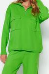 Moda Triko Düz Dik Yaka Düşük Kol Casual Günlük Geniş Kalıp Fermuarlı ve Cepli Triko Alt-Üst Takım