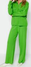 Ersefa Tarz Kadın Modern Moda Normal Bel Boru Paça Gömlek Yaka Modal Karışımlı Dokuma Gömlek-Pantolon Takım