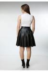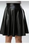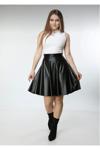 - Şık ve modern tasarımıyla dikkat çeken siyah kloş suni deri etek, ofis ortamlarında rahatlıkla tercih edilebilir.
