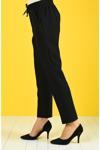 Sade ve şık tasarımıyla her kıyafetle uyum sağlayan düz desenli siyah havuç pantolon