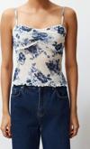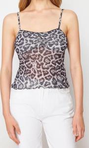 Moda V Yaka Örme Slim Baskılı Desen Casual Günlük Crop Askılı Kol Bluz ürünümüz, hem şıklığı hem de rahatlığı bir arada sunar