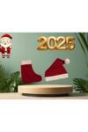 - Yılbaşı ve Noel ruhunu yansıtan kırmızı renkteki şapka ve çorap seti, kış aylarının vazgeçilmez aksesuarları arasında yer alır.