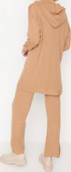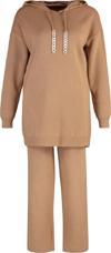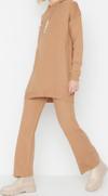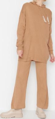 Ersefa Moda Yüksek Bel Kapüşonlu Düşük Kol Casual Günlük İpleri Zincir Detaylı Kazak-Pantolon Triko Takım
