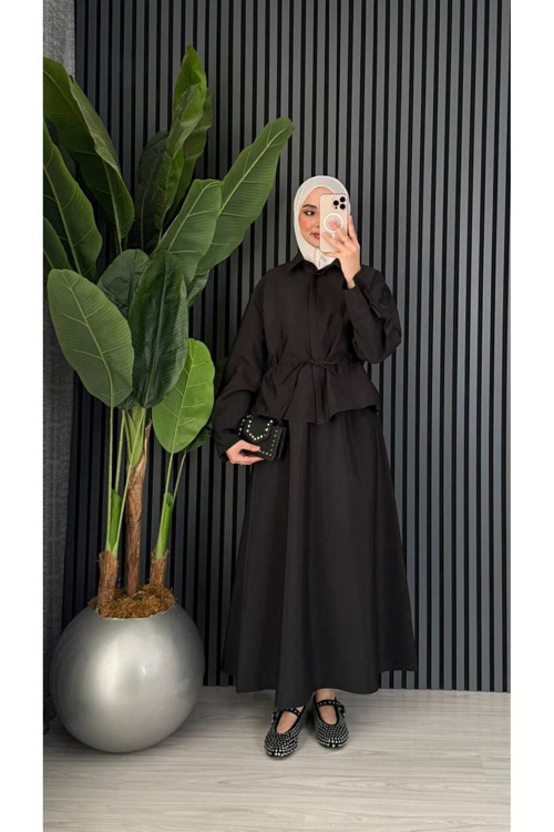 - Bağcıklı kemer/kuşak detayı bel bölgesine ekstra şıklık katar.