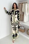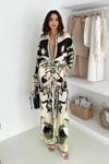 Şıklığı ve konforu bir arada sunan bu yeşil desenli modal saten takım, yumuşak dokusu ve zarif tasarımı ile öne çıkar. Üst ve alt parçadan oluşan takım, evde rahat kullanımın yanı sıra şık bir görünüm de sağlar. Modal saten kumaşı cildinize yumuşak dokunuş sunar, nefes alabilir özelliği ile gün boyu konfor sağlar.