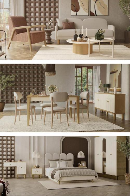 Modalife Eco Bohem Üçlü Midi Düğün Paketi - Oturma Grubu / Yatak Odası Takımı / Yemek Odası Takımı