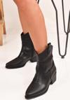 Özellikler: Renk: Siyah Malzeme: Cilt Detaylar: Nakışlı, fermuarlı Kullanım Alanı: Günlük, özel etkinlikler, sokak stili Siyah Cilt Nakışlı Fermuarlı Western Kovboy Kadın Kısa Bot, stilinize modern bir dokunuş katacak.