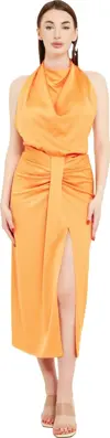 MODATALİKA Boyundan Bağlamalı Önü Yırtmaçlı Midi Boy Elbise İle Şıklığınıza Şıklık Katın..