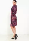 Modatalika Kadın Dijital Desen Baskı Detaylı Kemerli Şal Yaka Şık Uzun Kolu Mini Elbise