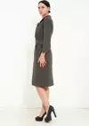 Modatalika Kadın Midi Boy Truvakar Kol Kemerli Broş Aksesuarlı Şık Elbise