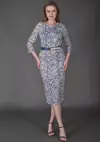 Modatalika Kadın Yeni Sezon Midi Boy Dijital Desenli Truvakar Kol Kemer Detaylı Elbise
