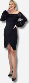 - Favori Tekstil Kol Kısmı İnci İşlemeli Düşük Omuz Mini Elbise