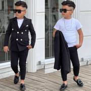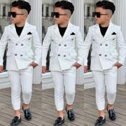 Ceket çizgili, astarlı, sahte cep kapaklı, mendil detaylı