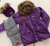 MODAVALS KIZ ÇOCUK İTHAL KÜRKLÜ KAPİŞONLU MONT, PONPONLU BERE VE EKOSE PANTOLON KOMBİN
