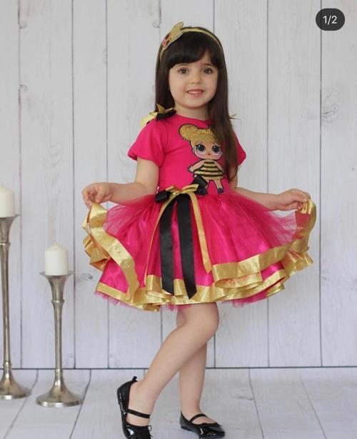*Üst beden; double kumaştan pul payet lol bebek figürlü, 4 kat tül kenarları simli şerit, altında saten giydirmesi ve el yapımı fiyonklarla tamamlanmıştır.