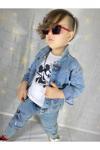 Ürün; Mickey baskılı kot ceket, Mickey baskılı Kot pantolon ve Mickey baskılı badi olmak üzere 3 parçadan oluşmaktadir.