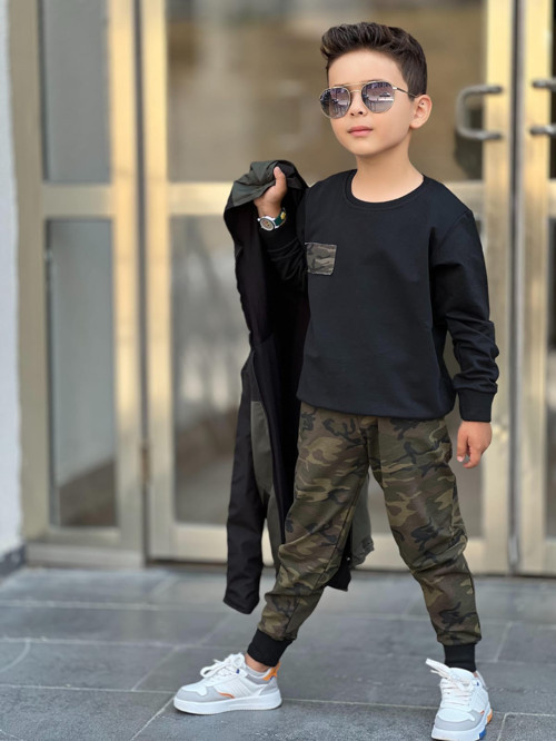 *Üst Sweat, kolları biyeli, yuvarlak yaka, kamuflaj cep detay, 2 İplik