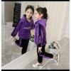 Modavals ŞERİT DETAYLI NAKIŞLI KAPİŞONLU KANGURU CEP FRANSIZ KADİFE GARSON BOY KIZ ÇOCUK EŞOFMAN TAKIMI - MOR
