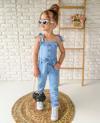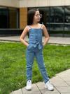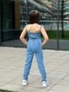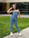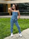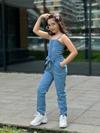 Bel Kuşaklı,düğme, cep ve sırtta fermuar detaylı, askılı tek parça kot tulum