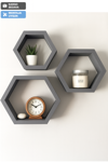 Ahşap Dekoratif Tasarım 3'lü Altıgen Duvar Rafı