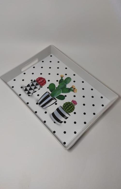 Modern Ethnic Büyük Kaktüs Desenli Pleksi Servis Sunum Tepsisi 30*20 Cm Çay Kahve Tepsisi