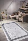 Halı Atölyesi Modern Gri Çerçeveli Dijital Baskı Hipoalerjenik Kaymaz Taban Halı Yolluk HA155