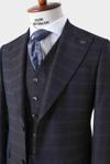 Erkek Lacivert Poliviskon Trend Yelekli Desenli Slim Fit Sivri Yaka Takım Elbise - Image 1