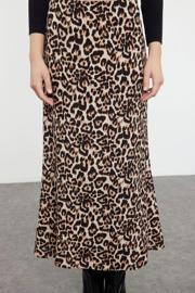 Modern Tarz Astarsız Dokuma Maxi Boy Leopar Animal Desenli Maxi Boy Dokuma Etek