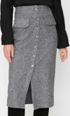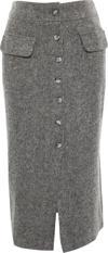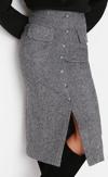 Modern Tarz Astarsız Dokuma Midi Boy Cep Detaylı Düğmeli Kaşe Kumaş Midi Dokuma Etek
