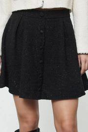 Modern Tarz Astarsız Dokuma Mini Boy Cep Detaylı Önden Düğmeli Kloş Tüvit Kumaşlı Dokuma Etek