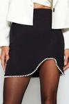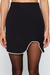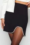 Modern Tarz Astarsız Dokuma Mini Boy İnci Aksesuarlı Etek