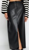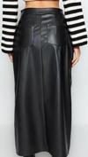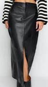 Modern Tarz Astarsız Örme Maxi Boy Yırtmaçlı Suni Deri Yüksek Bel Maxi Örme Etek