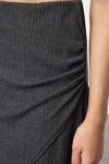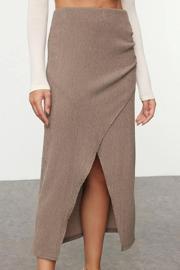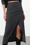 Modern Tarz Astarsız Örme Midi Boy Kruvaze Dokulu Büzgü Drape Detaylı Midi Etek