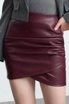 Modern Tarz Astarsız Örme Mini Boy İçi Şardonlu Suni Deri Drapeli Yüksek Bel Vücuda Oturan Etek