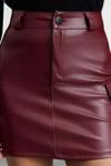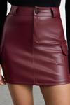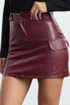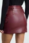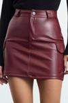 Modern Tarz Astarsız Örme Mini Boy Suni Deri Kargo Cepli Yüksek Bel Vücuda Oturan Mini Etek