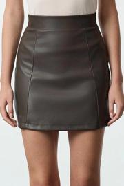 Modern Tarz Astarsız Örme Mini Boy Suni Deri Yüksek Bel Etek