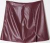 Modern Tarz Astarsız Suni Deri Mini Boy Suni Deri Yırtmaçlı Dokuma Mini Etek