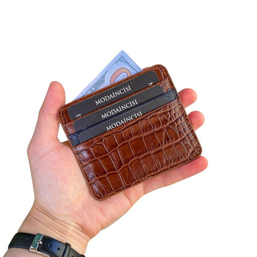 Modica Ariza - Kroko Desen Hakiki Deri İnce Kartlık