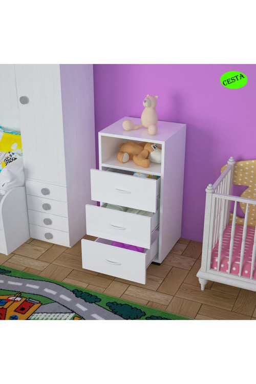 Üç geniş çekmece ile çocukların kişisel eşyalarını düzenli bir şekilde saklamalarına olanak tanır