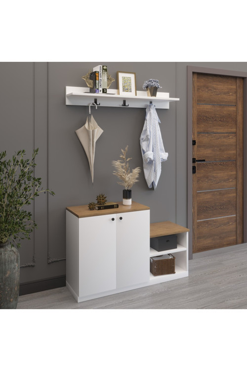 ürün yüksekliği 70 cm ürün genişliği 90 cm ürün derinliği 32 cm oturma alanı yüksekliği 45 cm - Modern tasarımıyla evinizin antresine şıklık katan Eva portmanto ayakkabılık, dekorasyonunuzu tamamlar.