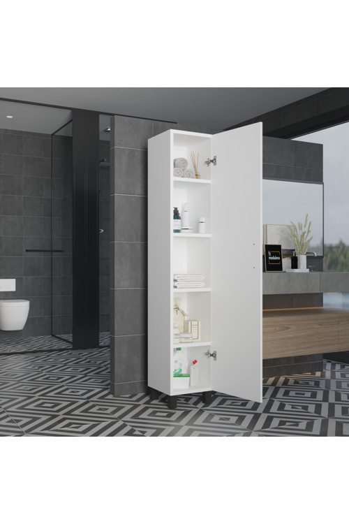 -dik banyo dolabı deterjanlık / havluluk / banyo rafı düzenleyici yükseklik 163 cm derinlik 30 cm genişlik 30 cm Suntalam malzemesinden üretilmiş olup, dayanıklılığı ve uzun ömürlü kullanımı ile ön plana çıkar.