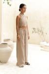 MAI STUDIOS CO. Moira Vizon Keten Crop Pantolon Takım