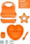 Moki Silikon 5'Li Seti Sunset Turuncu / Mama Önlüğü, Mama Tabağı, Bandırma Kaşığı, Bardak, Diş Kaşıyıcı