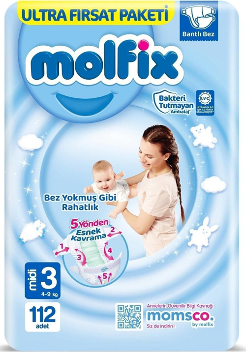 Molfix Külot Bebek Bezi'nin külot rahatlığındaki formu, özel olarak tasarlanmış yan bölgesi ve atma bandı sayesinde bebeğinizin en hareketli anlarında bezini kolayca değiştirmenizi sağlar.
