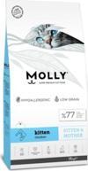 Molly kitten kedi maması 15 kg 12 aya kadar sütten kesilmiş yavru kediler için.; Molly kitten, sağlıklı bir metabolizma ve kemik gelişimini desteklemek üzere omega-3 yağları ve temel mineral ve vitaminler ile zenginleştirilmiştir.; Ayrıca optimum düzeyde protein, yağ ve karbonhidrat dengesi ile yavru kedinizin sağlıklı bir şekilde büyümesi için formüle edilmiştir.; Sağlıklı gelişim yavru kedinizin sağlıklı büyümesini ve metabolizmasının ideal çalışmasını destekleyecek şekilde, uzun bir ömür sürebilmesi için protein ve yağ oranı dengelenerek formüle edilmiştir.; Ayrıca formüldeki optimum mineral dengesi yavru kedinizin kemik gelişimine katkıda bulunur.; Dengeli vitamin ve mineraller metabolizmayı desteklemek ve sürekli enerji üretimini sağlamak üzere optimal düzeyde vitaminler içermektedir.; Iskelet yapısının güçlü ve sağlıklı oluşumu için gerekli olan temel iz mineraller, vücudun kolaylıkla absorbe edebileceği ve faydalanabileceği formdadır.; Deri ve tüy sağlığı sağlıklı deri yapısını ve parlak tüylerin oluşumunu desteklemek üzere vitaminler ve amino asitlerce zenginleştirilmiş.; Omega-6:Omega-3 yag asitleri oranı dengelenmiştir.; Hamilelik ve emzirme dönemineki yetişkin kediler için sağlıklı hamilelik dönemi yüksek oranda sindirilebilir protein ve dengeli aminoasit içeriği ile molly kitten.; Gebe kediler için yavruların doğum ağırlıklarını ve bağışıklık sistemlerini optimize eden ideal bir mamadır.; Bağışıklık desteği içeriğindeki doğal prebiyotik lifler, bağırsaklarda yararlı bakterilerin gelişimini destekler ve patojenlerin zararlı etkisinin azaltımasına yardımcı olur.; Bağışıklık sistemini destekler ve sindirimi optımıze eder.; Sağlıklı sindirim sistemi sindirilebilirliği yüksek gıdaların.; Hassas bir pişirme işlemine tabi tutulması ile molly krtten maksimum sindirimin sağlanmasına yardımcı olur.; Sağlıklı emzirme dönemi molly kitten sayesinde süt emzirme döneminde kedinizin yavrularının sağlıklı gelişimi ve iskelet sisteminin yapılanması için gerekli olan yağ asitleri ve minerallerce zengin süt veriminin sağlanmasına yardımcı olur.; Içindekiler: Kurutulmuş tavuk proteini (%46), baldo pirinç (%14), mısır, rafine tavuk yağı, bezelye, hamsi unu (%7), karides unu, bira mayası, hidrolize tavuk ciğeri, hamsi yağı, nükleotit maya proteini, mineraller, prebiotik mannan oligo sakkaritler, deniz yosunu, avizeağacı özütü, kızılcık tozu, pisilyum.; Analitik bileşenler: Protein % 38 - Yağ içeriği % 18 - Ham kül % 8 - Ham selüloz (lif) % 2.5 - Omega-6 % 3.8 - Omega-3 % 0.85 ;