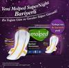Molped Supernight pamuksu 3D bariyerleri sayesinde sıvıyı sızdırmazken,Kademeli kilit sistemi ile sıvının geliştirilmiş emici tabakada kalmasını sağlar. %60 daha geniş arka yüzeyi ile gece ve gündüz %100 koruma ve güven sağlar. Dermatolojik olarak test edilmiş olan Molped Supernight üstün performansının yanında cilt dostu yumuşacık bir üst yüzeye de sahiptir.